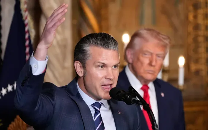 Bộ trưởng Bộ Chiến tranh Pete Hegseth phát biểu tại câu lạc bộ Mar-a-Lago của Tổng thống Trump, ở Palm Beach, Florida, ngày 22/12/2025 (Ảnh: AP)