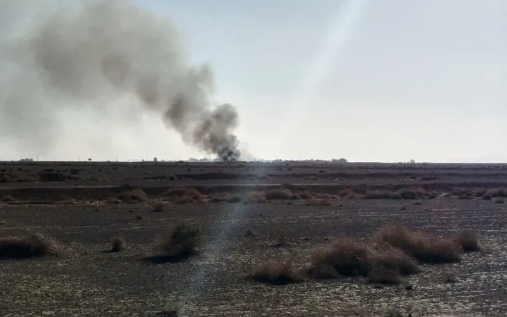 Khói đen bốc lên tại khu vực ở tỉnh Isfahan, Iran, nơi truyền hình nhà nước Iran cho rằng máy bay vận tải và hai trực thăng Mỹ bị bắn hạ (Ảnh: Sepahnews/AP)
