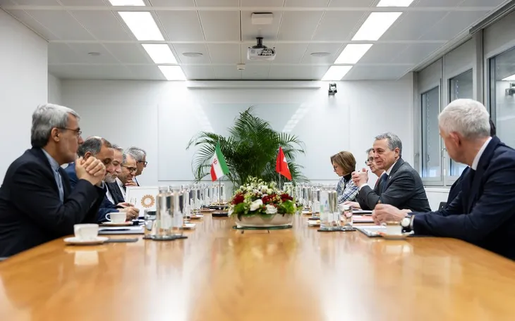 Ngoại trưởng Thụy Sĩ và Ngoại trưởng Iran trong cuộc gặp song phương giữa Thụy Sĩ và Iran, tại Geneve, Thụy Sĩ, ngày 17/2/2026 (Ảnh: AP)