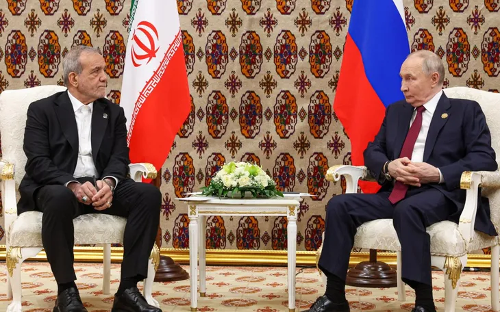 Tổng thống Iran Masoud Pezeshkian và Tổng thống Nga Vladimir Putin tại Turkmenistan, ngày 12/12/2025 (Ảnh: Zuma/TASS)
