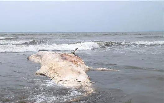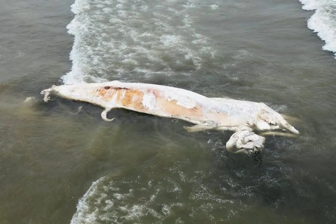 Xác cá voi trôi dạt vào bờ biển xã Hải Châu, Nghệ An.