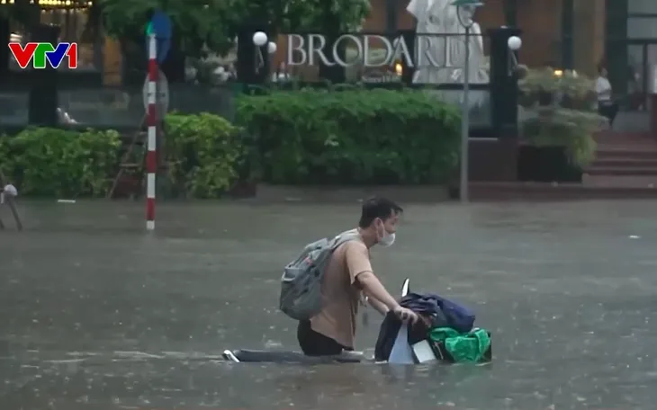 Đường phố Hà Nội hôm nay chìm trong biển nước