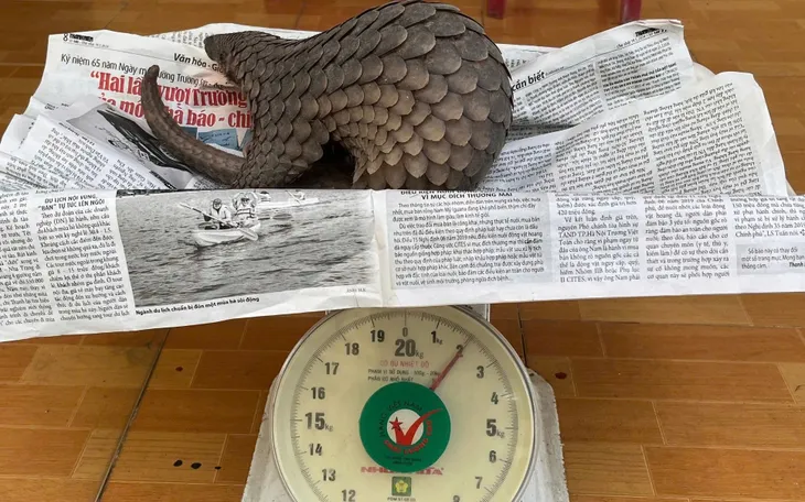 Người dân tự nguyện giao nộp cá thể tê tê quý hiếm cho Công an xã Phú Thuận để thả về tự nhiên