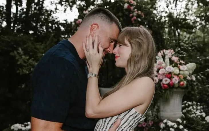 Cặp đôi đã tiết lộ tin vui trên Instagram vào tháng 8, với bức ảnh Travis Kelce quỳ một gối trong vườn hoa, nơi anh cầu hôn siêu sao nhạc pop. "Giáo viên tiếng Anh và giáo viên thể dục của bạn sắp kết hôn rồi", họ chú thích bài đăng chung.