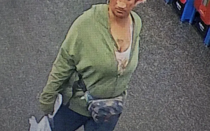 Hình ảnh từ camera giám sát cho thấy Camille Benson đi lại trong một cửa hàng Walmart ở Biloxi, bang Mississippi, nơi người này bị cáo buộc giấu lưỡi dao cạo trong bánh mì (Ảnh: Biloxi Police Department/AP)
