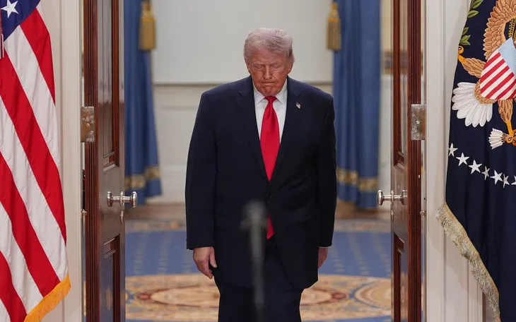 Tổng thống Mỹ Donald Trump chuẩn bị phát biểu về xung đột Iran tại Nhà Trắng, ngày 1/4/2026. (Ảnh: AP)
