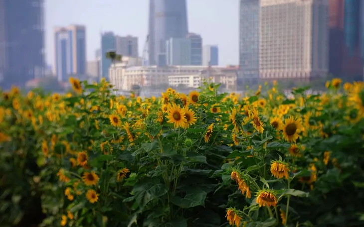 Vườn hoa hướng dương đang độ rực rỡ ở khu công viên bên bờ sông Sài Gòn