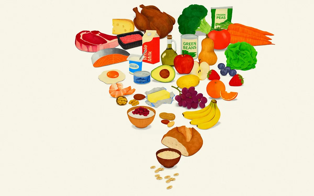 - Bổ sung protein lành mạnh. Các khuyến nghị dinh dưỡng mới nhấn mạnh và đề cao vai trò của các nguồn protein chất lượng cao, không chứa đường bổ sung hoặc tinh bột tinh chế. Đây là điểm thay đổi rõ rệt so với những tháp dinh dưỡng trước đây. Thực tế, lượng protein cao hơn giúp tạo cảm giác no, duy trì khối lượng cơ nạc và cải thiện kết quả trao đổi chất.