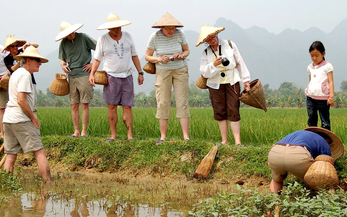 Du khách nước ngoài trải nghiệm du lịch tại Ninh Bình. Ảnh: Nguyễn Minh