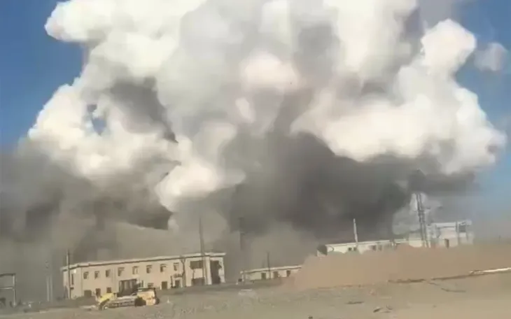 Khói bốc lên từ hiện trường vụ nổ tại một nhà máy ở thành phố Bao Đầu, khu tự trị Nội Mông (Trung Quốc), ngày 18/1/2026 (Ảnh: Xinhua/AP)