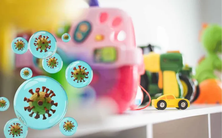 Đầu tiên là đồ chơi - đặc biệt là đồ chơi bằng nhựa và đồ chơi vải. Trẻ có xu hướng đưa đồ chơi lên miệng, chia sẻ với bạn bè hoặc để lẫn lộn giữa các nhóm. Với đồ chơi vải, khả năng giữ ẩm khiến virus có thể tồn tại lâu hơn so với bề mặt cứng, trong khi việc giặt giũ thường không được thực hiện mỗi ngày.