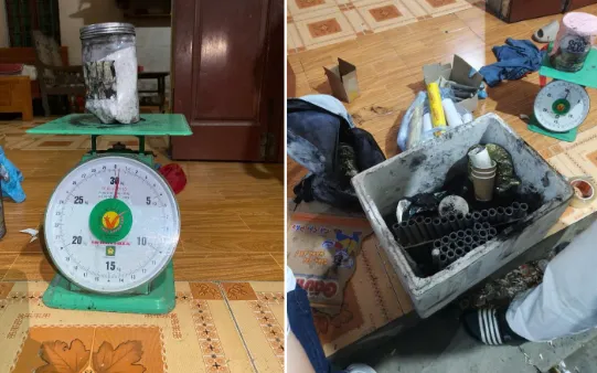 Ngay sau khi phát hiện vụ việc, tổ công tác Công an xã Phú Cát đã nhanh chóng có mặt tại gia đình để kiểm tra, xác minh theo quy định. Quá trình làm việc, L.V.H tự nguyện giao nộp 3 quả pháo cuộn, 2 giàn pháo tự chế cùng nhiều nguyên liệu, dụng cụ phục vụ việc sản xuất pháo nổ với tổng khối lượng hơn 2kg gồm bột than, bột lưu huỳnh, bột natri, giấy cuộn, keo dán và màng bọc thực phẩm — các thành phần có nguy cơ gây cháy nổ cao nếu sử dụng, bảo quản không đúng cách.