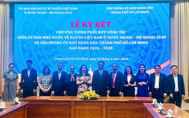 Ngày 10/4, Lễ Ký kết chương trình phối hợp công tác và triển khai công tác người Việt Nam ở nước ngoài trên địa bàn TP Hồ Chí Minh giữa Ủy ban Nhà nước về người Việt Nam ở nước ngoài – Bộ Ngoại giao với Văn phòng Ủy ban nhân dân (UBND) TP Hồ Chí Minh giai đoạn 2026 - 2028 đã được tổ chức.