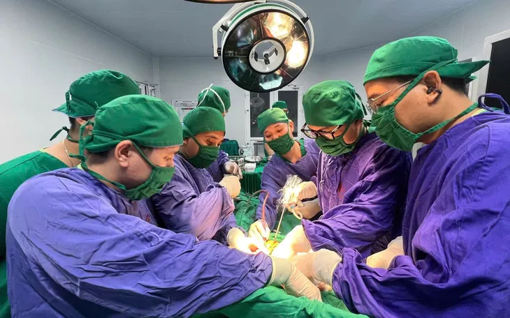 Ekip phẫu thuật cắt bỏ khối u cho bệnh nhân. Ảnh: BVCC
