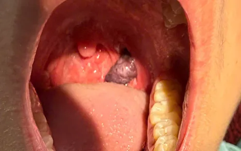 Người nhà bệnh nhi N.C.K. (14 tuổi, trú tại Hà Nội) cho biết, em thường xuyên cảm thấy nuốt vướng một bên họng, khó chịu kéo dài nhưng không nói với gia đình. Trong một lần khám răng, bác sĩ nha khoa phát hiện khối bất thường vùng amidan trái và khuyên đưa em đến khám chuyên khoa Tai Mũi Họng.