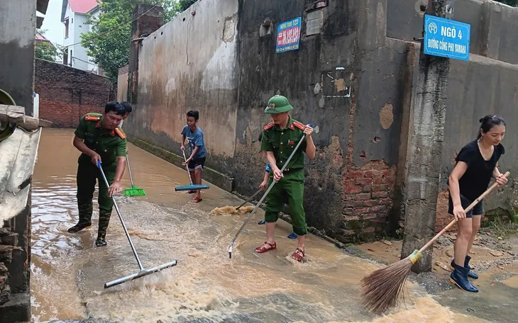 Công an Hà Nội giúp người dân ổn định cuộc sống sau mưa lũ.