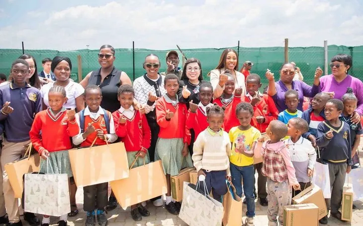 Tại khu dân cư Tsakane ở East Rand (Gauteng) và cách Johannesburg 38km, nơi nổi tiếng với di sản khai thác vàng và than từ cuối thế kỷ XIX, Phu nhân Lê Thị Bích Trân đã trao tận tay những món quà mang từ Việt Nam cho người dân và các em học sinh nơi đây.