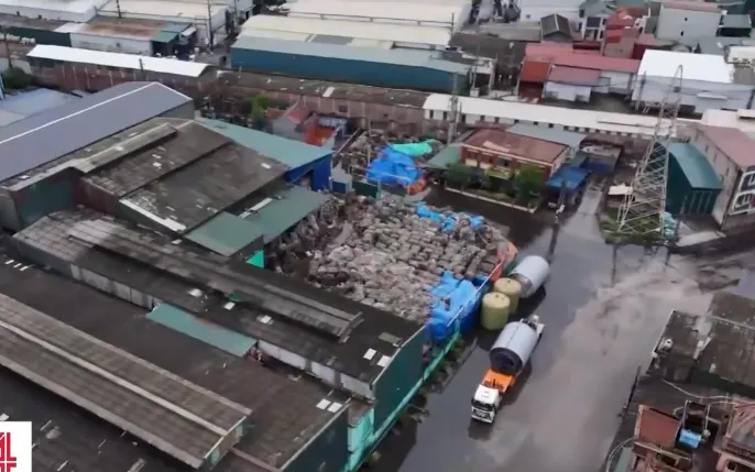 Thực tế, sau khi đổ phế thải lấn sông Hồng, một số nhà máy tái chế giấy mọc lên ngay cạnh đó. Bên cạnh các cơ sở vẫn đang gấp rút xây dựng, lắp đặt dây chuyền sản xuất thì một số cơ sở đã vận hành.