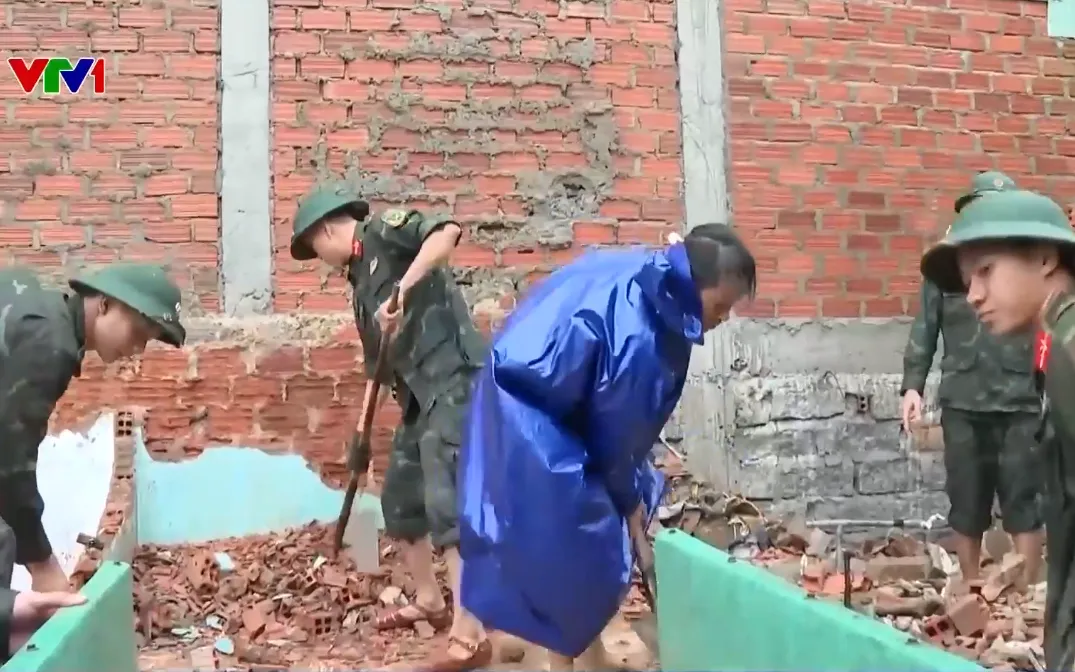 Chị Nguyễn Thị Minh Dự chia sẻ: "Chồng em đi làm ăn xa, mưa bão, lũ làm nhà em sập. Bố mẹ thì già rồi, nhà em cũng neo người không dọn dẹp được. Nhờ có các chú bộ đội hỗ trợ và dọn dẹp cho gia đình em, em rất biết ơn và cảm ơn các chú bộ đội nhiều".
