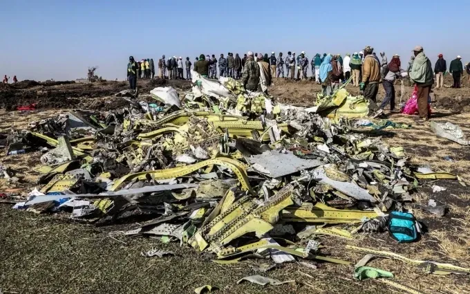 Hiện trường vụ rơi máy bay Boeing 737 MAX tại Ethiopia năm 2019 khiến 157 người chết (Ảnh: AFP)