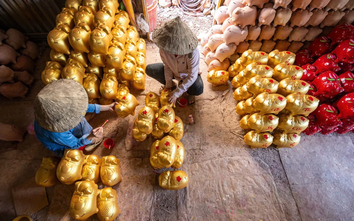Giữa lòng Thành phố Hồ Chí Minh sôi động, vẫn còn một không gian chậm rãi, nơi mùi đất sét, khói lò nung và sắc màu thủ công hòa quyện thành ký ức Tết rất riêng. Đó là làng nghề làm heo đất ở Lái Thiêu - nơi những chú heo nhỏ bé đang lặng lẽ giữ lại một phần hồn văn hóa Việt.