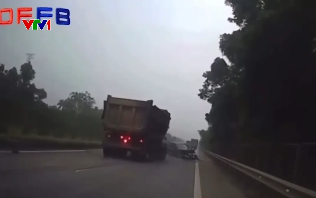 Xe con đã bị xe tải đâm phải đẩy lên phía trước, va vào dải phân cách và văng mạnh ra bên phải đường. Hiện chưa rõ thương vong sau vụ tai nạn.