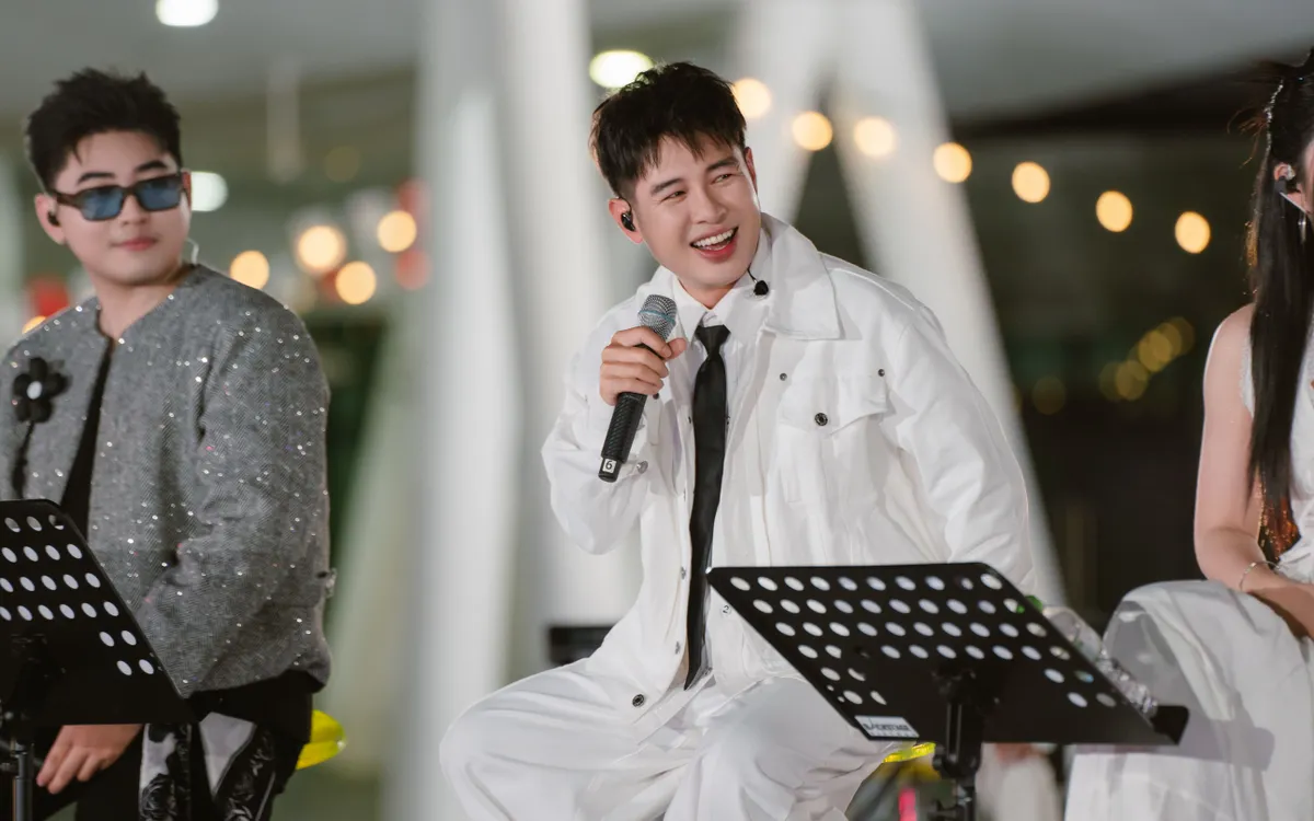 Ba chiếc xe điện VinFast VF3 rực rỡ sắc màu xuất phát từ Bát Tràng, chở theo những gương mặt quen thuộc Minh Khôi, Quang Huy, Bão Ngọc cùng gương mặt mới Ngọc Yến. Trên xe, các nghệ sĩ trò chuyện vui vẻ, chia sẻ sự háo hức khi được biểu diễn trước hàng trăm sinh viên và đặc biệt là lần đầu song ca cùng Hoàng Hải – thần tượng âm nhạc của nhiều thế hệ khán giả.