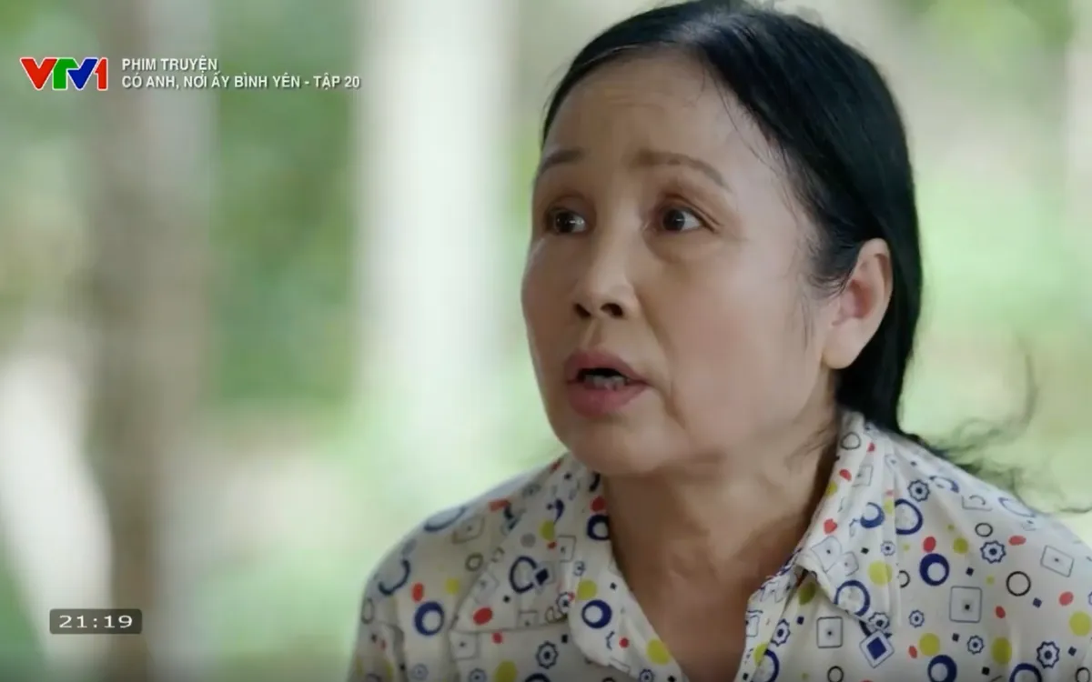 Tập 20 của Có anh, nơi ấy bình yên mở ra với bầu không khí căng thẳng tại xã Tiên Phong khi bà Mừng tiếp tục nghi ngờ hàng xóm là thủ phạm phá vườn chuối nhà mình. Bà chạy sang cổng nhà bà An để chửi đổng, dù chưa có bất kỳ bằng chứng nào rõ ràng. Trước sự việc này, Huy (Tuấn Tú) khuyên bà Mừng nên bình tĩnh, tránh nghi ngờ vô cớ, mọi chuyện phải dựa trên chứng cứ cụ thể.
