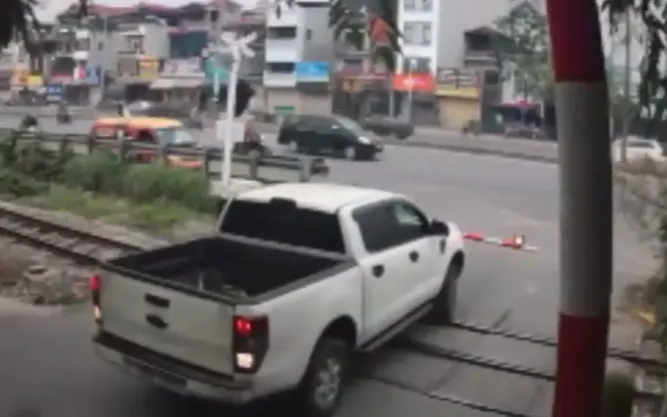 May mắn đây là một đường ngang có người gác, nhân viên gác chắn vẫn đủ thời gian hướng dẫn lái xe lùi lại vị trí an toàn. Đoàn tàu đi qua không xảy ra va chạm. Nhưng rõ ràng hành vi cố vượt đường ngang khi cần chắn đang hạ cần xử lý nghiêm bởi không phải lúc nào người vi phạm cũng có đủ thời gian, khoảng trống để thoát khỏi va chạm.