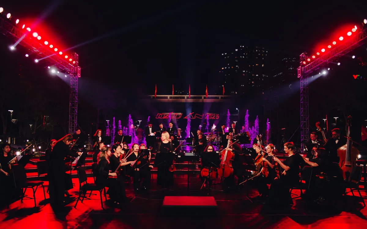 Điểm nhấn đặc biệt của Dấu ấn 2025 là việc lần đầu tiên âm nhạc giao hưởng được lựa chọn làm “đường dây cảm xúc” xuyên suốt toàn bộ kịch bản. Âm nhạc không đứng ngoài nội dung, cũng không chỉ là điểm nhấn minh họa, mà trở thành yếu tố dẫn dắt, kết nối các mạch câu chuyện tưởng chừng rất khác nhau của một năm đầy biến động. Sự xuất hiện của ca sĩ Hà Anh Tuấn cùng dàn nhạc Sun Symphony Orchestra, hợp xướng quốc tế Hanoi Voice và nhạc trưởng Đồng Quang Vinh mang đến một không gian nghệ thuật trang trọng, tiết chế, nhưng sâu lắng. Những giai điệu giao hưởng vang lên đúng lúc, đúng chỗ, làm mềm các vấn đề nặng, giúp cảm xúc người xem được dẫn dắt một cách tự nhiên.