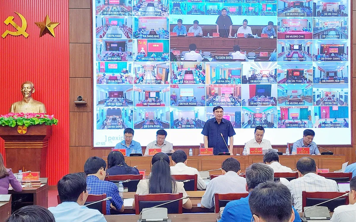 Ông Lê Thành Đô, Chủ tịch UBND tỉnh Điện Biên phát biểu tại cuộc họp. Ảnh: Quốc Hưng