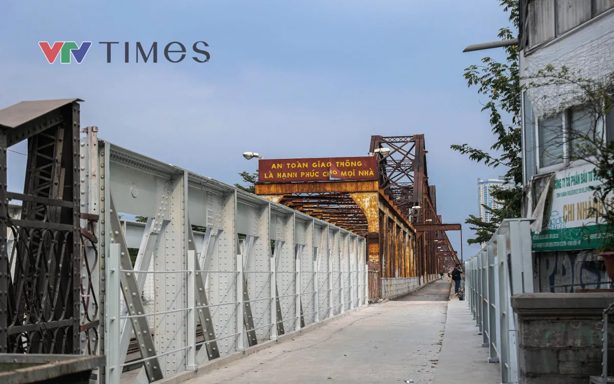 Từ cuối tháng 10/2025, cầu được thiết lập mặt bằng thi công để tu bổ định kỳ, trong đó làn xe thô sơ theo hướng Bồ Đề – Hoàn Kiếm tạm dừng khai thác 61 ngày. (ảnh: Minh Vũ)