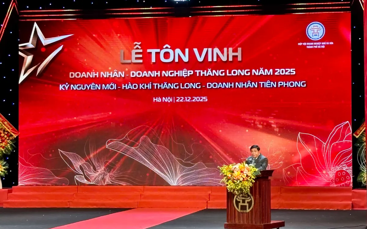 Ngày 22/12, Hiệp hội Doanh nghiệp Nhỏ và Vừa TP Hà Nội (HANOISME) đã tổ chức Lễ Tôn vinh Doanh nhân - Doanh nghiệp Thăng Long năm 2025 nhằm ghi nhận, tri ân những doanh nhân - doanh nghiệp có đóng góp xuất sắc cho sự phát triển kinh tế - xã hội Thủ đô và đất nước. Với chủ đề xuyên suốt “Kỷ nguyên mới - Hào khí Thăng Long - Doanh nhân tiên phong”, sự kiện không chỉ là dịp để tri ân những đóng góp xuất sắc của cộng đồng doanh nghiệp mà còn là lời kêu gọi tinh thần đổi mới sáng tạo, khẳng định bản lĩnh của đội ngũ doanh nhân Thủ đô trước giai đoạn phát triển mới của đất nước.