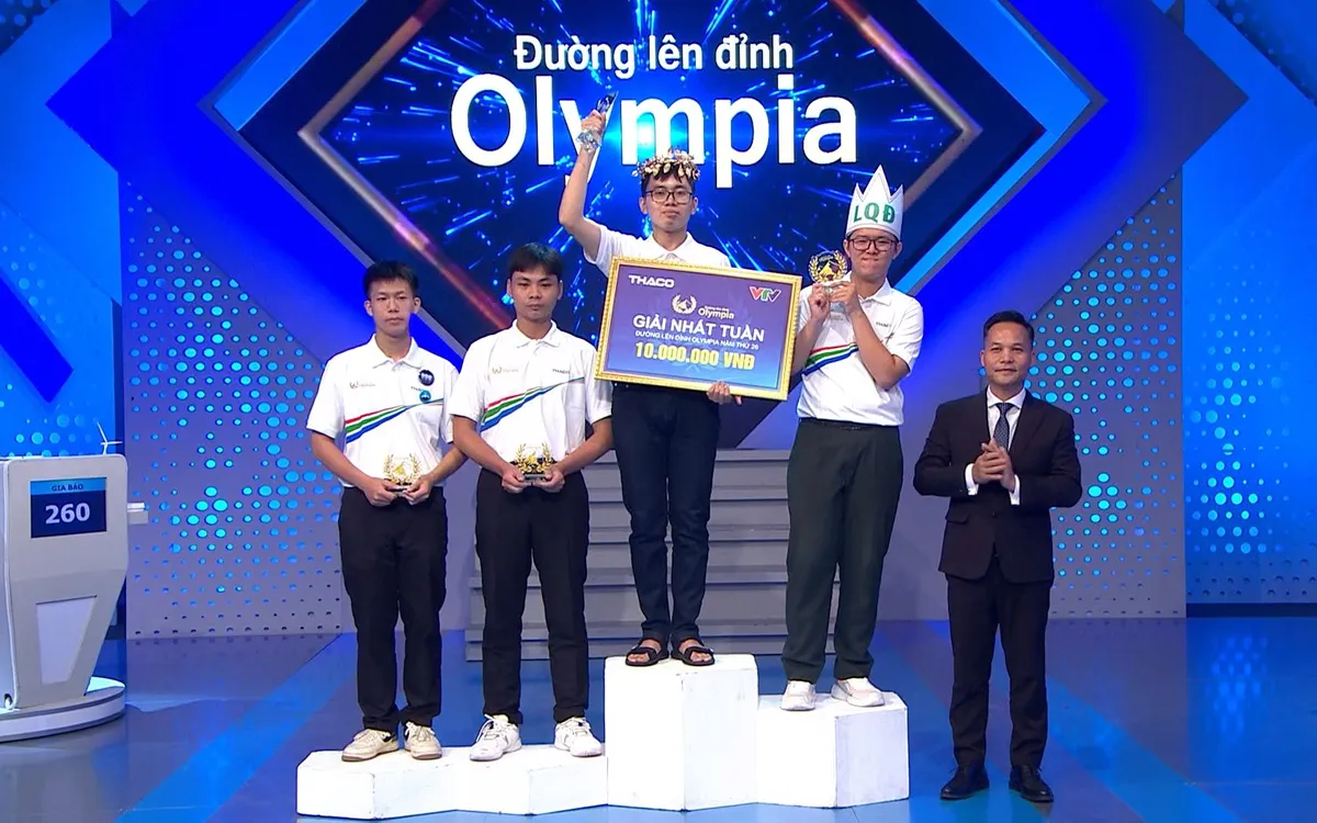 Đường lên đỉnh Olympia tuần này là cuộc đấu của 4 nhà leo núi: Nguyễn Xuân Hưng - trường THPT Quảng Oai (Hà Nội), Phạm Bá Đức Anh - trường THPT B Bình Lục (Ninh Bình), Đoàn Gia Khánh - trường THPT Hữu Lũng (Lạng Sơn), Trần Võ Gia Bảo - trường THPT Chuyên Lê Quý Đôn (Đông Hải, Khánh Hòa).