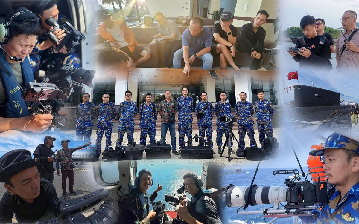 Quay phim Hoàng Tích Thiện và các thành viên trong đội quay phim, ghi hình diễu binh trên biển trong thời gian tác nghiệp