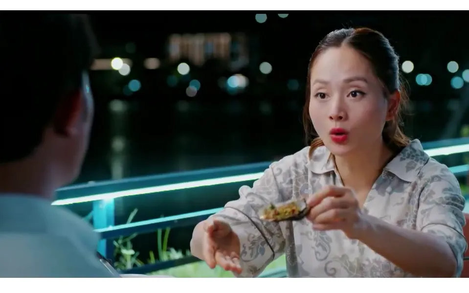 Dù ánh mắt không rời khỏi con hàu nướng nhưng Đăng vẫn cố gắng từ chối vì bị cấm ăn, chỉ được ăn đồ hấp, luộc. Cô gái đoán ngay ra người cấm Đăng ăn đồ có dầu mỡ là vợ anh nên cô hứa sẽ không tiết lộ chuyện này.
