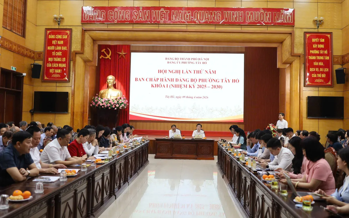 Sáng 9/4, Ban Chấp hành Đảng bộ phường Tây Hồ khóa I, nhiệm kỳ 2025 - 2030 tổ chức Hội nghị lần thứ Năm nhằm đánh giá kết quả thực hiện công tác xây dựng Đảng, phát triển kinh tế - xã hội, đảm bảo quốc phòng - an ninh quý I. Đồng thời, thảo luận và định hướng các nhiệm vụ trọng tâm cho quý II năm 2026.