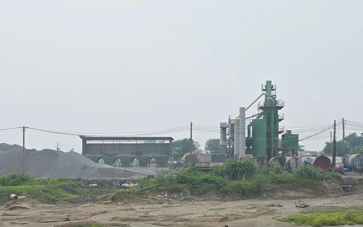 Xây dựng Trạm trộn bê tông trái phép trên bãi đê sông Hồng thuộc xã Phú Xuyên. Ảnh: Quốc Hưng