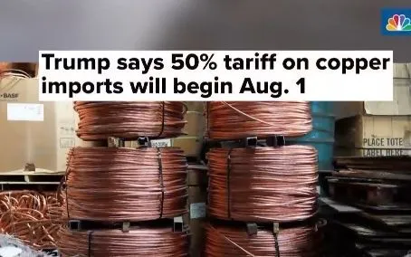 Tờ CNBC có bài viết: "Tổng thống Donald Trump cho biết thuế nhập khẩu 50% với đồng sẽ có hiệu lực từ 1/8". Trong đó trích phát biểu của ông Trump đánh giá đồng là vật liệu cần thiết cho các sản phẩm công nghiệp quốc phòng của Mỹ như thiết bị bán dẫn, máy bay, tàu chiến, đạn dược, trung tâm dữ liệu, pin, hệ thống radar, phòng thủ tên lửa và cả vũ khí siêu thanh.