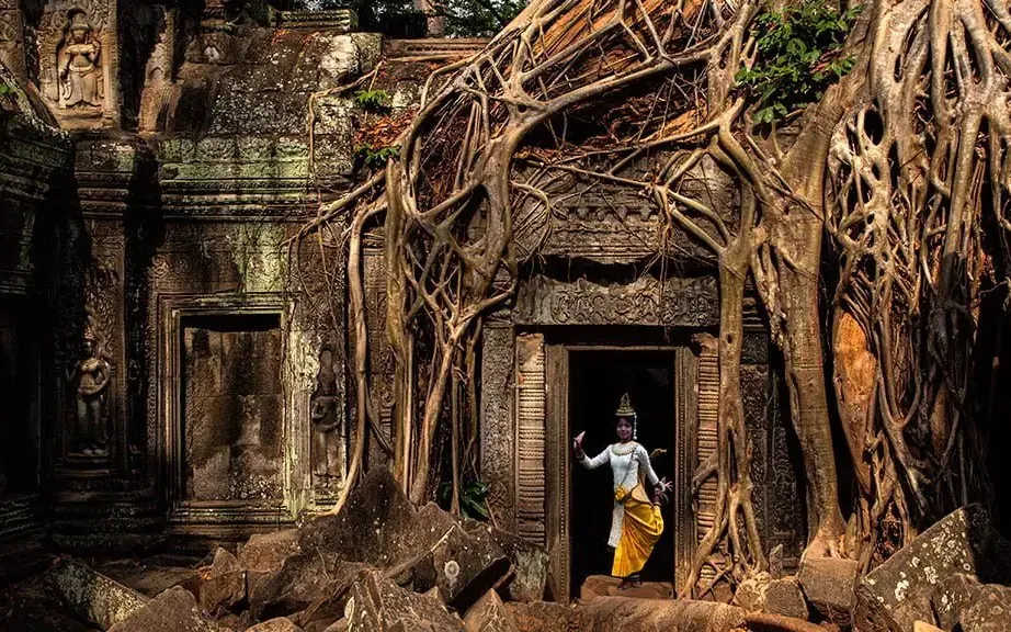Nằm trong quần thể Angkor nổi tiếng, đền Tà Prohm được ví như nơi rừng và đá hòa quyện với nhau. Đây là điểm thăm quan không thể bỏ qua của du khách khi đến khu quần thể Đền Angkor Wat, Angkor Thom, Campuchia.