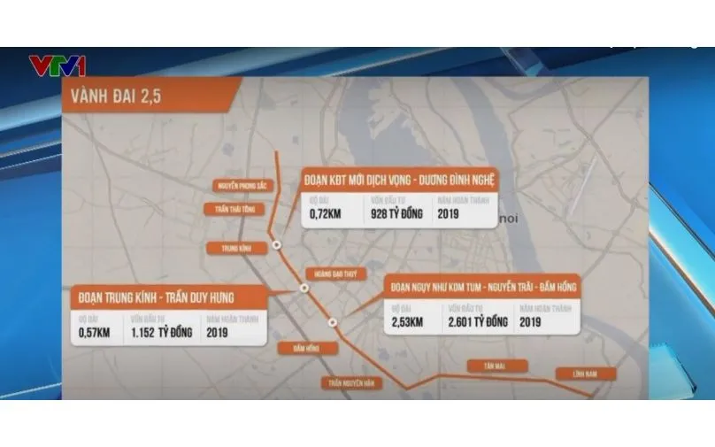 Đường vành đai 2,5 Hà Nội có tổng chiều dài hơn 19km, được chia thành 13 đoạn, trong đó 5 đoạn đã hoàn thành, 5 đoạn đang triển khai. Thành Phố Hà Nội vừa phê duyệt đầu tư theo trường hợp khẩn cấp đối với 3 đoạn còn lại của tuyến đường này. Đây là những đoạn đi qua khu vực có nhiều dân cư và nhiều năm nay ách tắc trong công tác giải phóng mặt bằng.