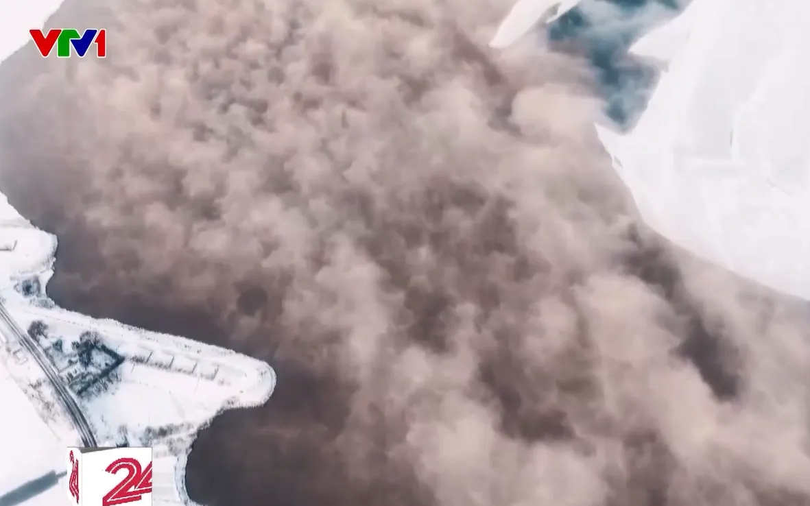 Cùng với lớp tuyết mới phủ trắng hai bên bờ sông, lớp sương mù dày đặc cuộn lên và trôi lơ lửng trên mặt sông rộng lớn đã tạo nên một khung cảnh như trong mơ.