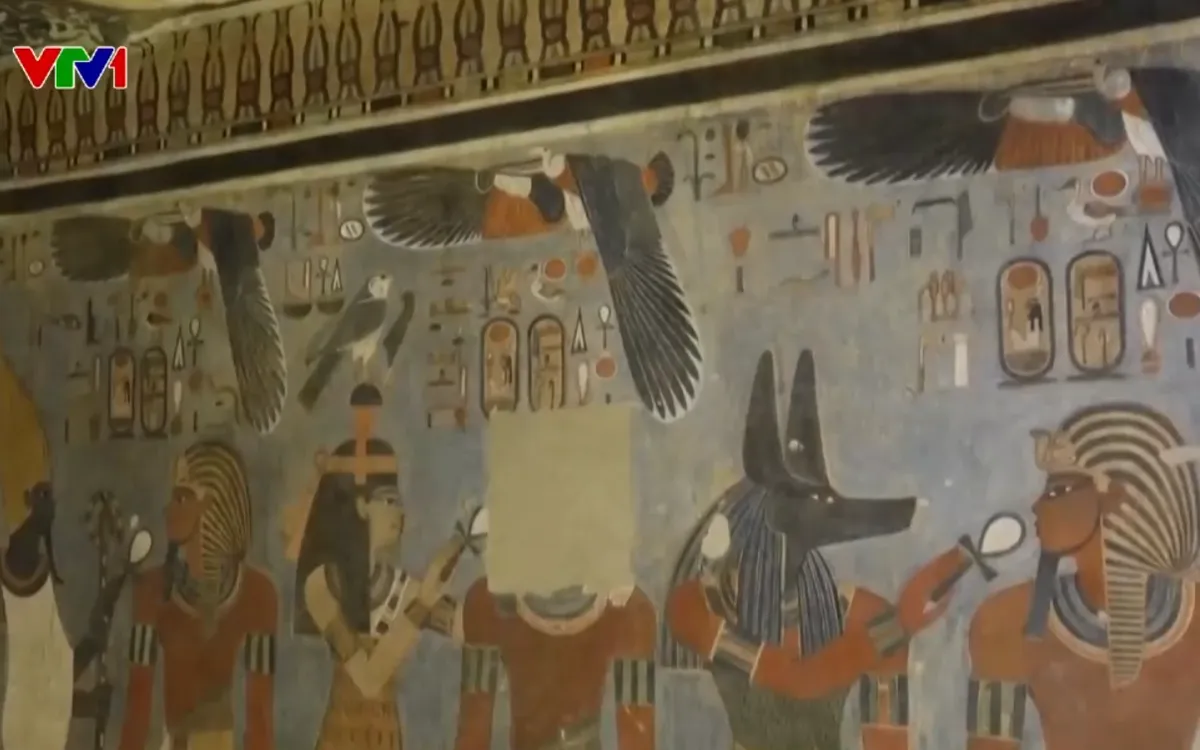 Sau nhiều năm trùng tu, giờ đây lăng mộ đã khoác lên mình một diện mạo hoàn toàn khác. Những bức tranh tường từ sàn đến trần, tỏa sáng ngay cả trong ánh sáng mờ ảo.