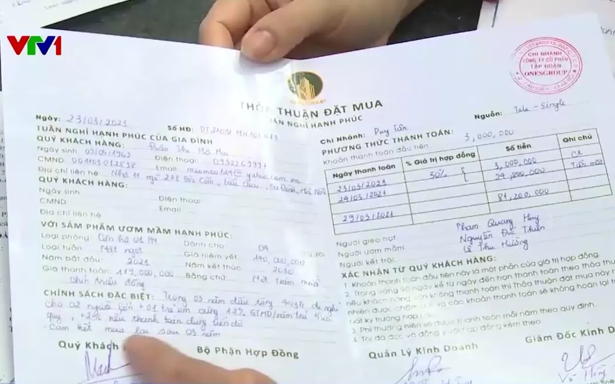 Tin tưởng vào lời quảng cáo, năm 2021, bà Đoàn Thị Hà Mai đã tham gia một sự kiện và mua gói “Tuần nghỉ hạnh phúc” của Công ty Cổ phần OnesGroup (sau này đổi tên thành Vacation Paradise), có trụ sở tại 602 Phạm Văn Đồng, TP. Hồ Chí Minh, với giá 119 triệu đồng. Theo hợp đồng, với gói “Mật ngọt”, bà không chỉ được nghỉ dưỡng trong 3 năm mà còn được chi trả lãi hàng tháng, với mức cam kết khoảng 12%/năm. Sau thời gian này, công ty sẽ mua lại gói kỳ nghỉ.