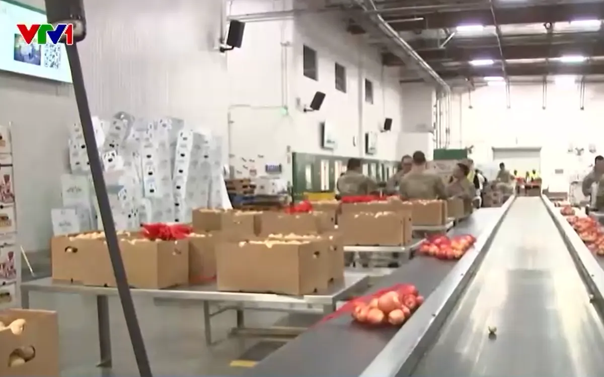 Hiện có 38 binh sĩ được điều động hỗ trợ tại Los Angeles, đảm nhận công việc đóng gói và vận chuyển nông sản tươi để kịp phân phát cho cộng đồng.