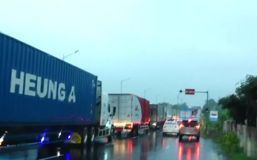 Những chiếc xe tải, xe khách nằm nối đuôi nhau trên tuyến quốc lộ 1 kéo dài từ Xã Ô Loan, Tuy an Nam đến Phường Bình Kiến. Nhiều phương tiện còn di chuyển vào các con đường khác vì đường trên quốc lộ 1 không còn đủ chỗ dừng.