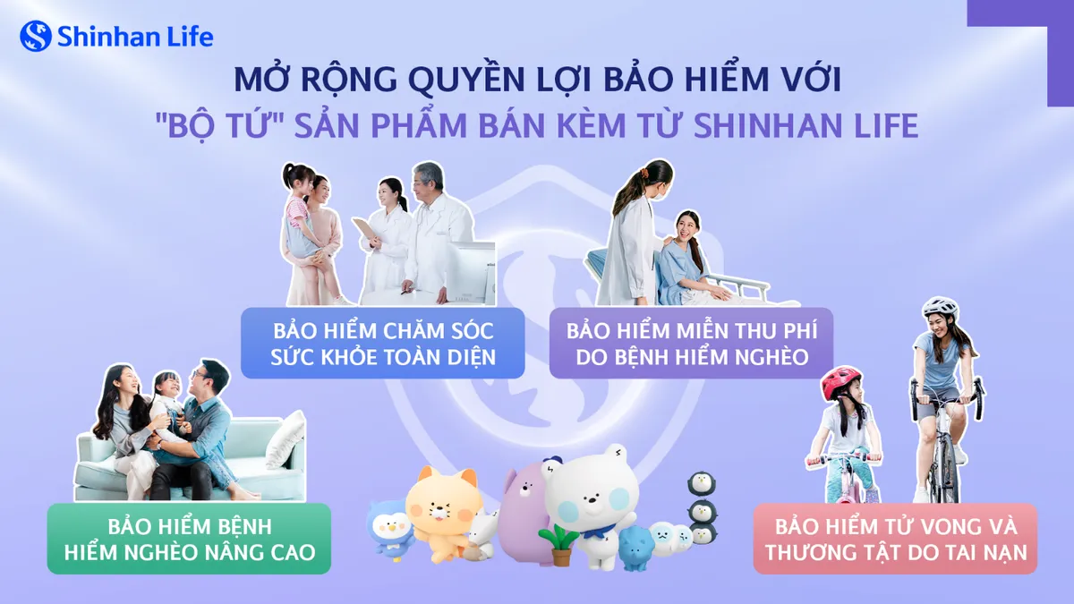 Bộ tứ sản phẩm bảo hiểm bán kèm của Shinhan Life mang đến những quyền lợi bảo hiểm mở rộng, bảo vệ khách hàng trước các rủi ro trong cuộc sống