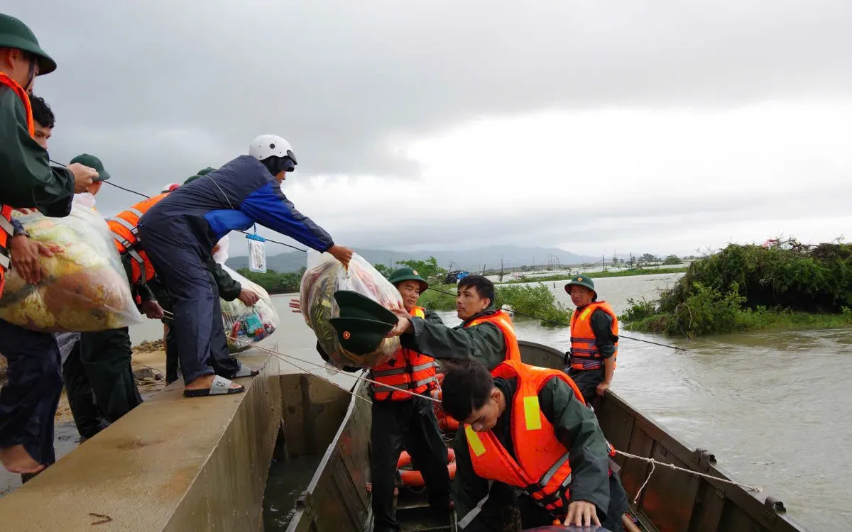 Bộ đội Quân khu 5 hỗ trợ khắc phục hậu quả mưa lũ tại xã Tuy An Đông, tỉnh Đắk Lắk. Ảnh: Văn Viễn