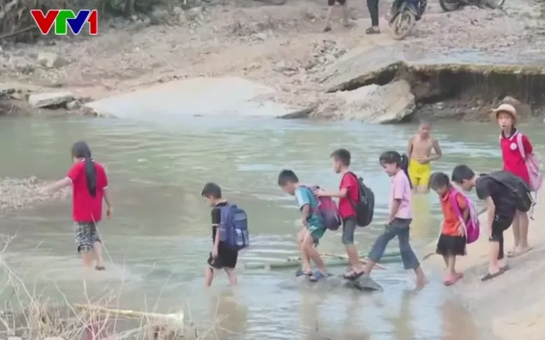 Gần 100 học sinh từ bậc mầm non đến THPT của thôn Thúy, xã Thiết Ống, tỉnh Thanh Hóa đang phải ngày ngày lội suối đến trường bởi cầu tràn, đường chính nối từ thôn ra quốc lộ 15A đã bị nước lũ cuốn trôi một nhịp và hư hỏng nặng.