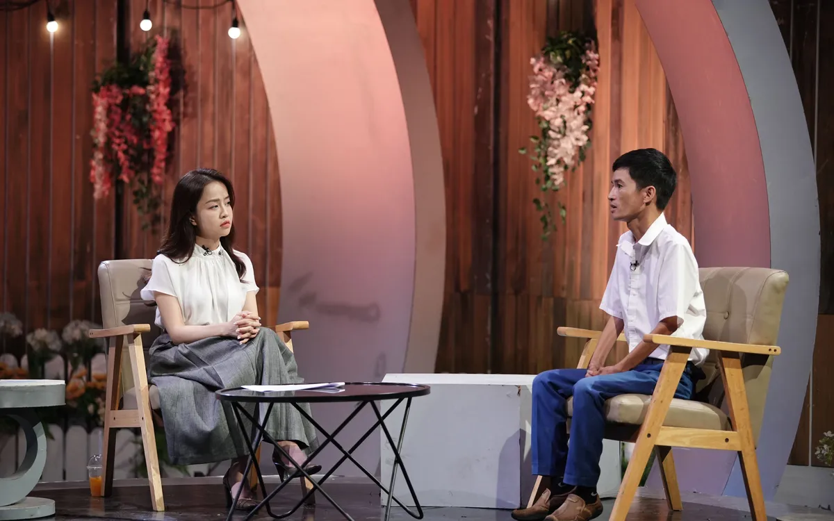Hai vợ chồng Lê Xuân Thắng và MC Minh Hằng trong chương trình Trạm yêu thương